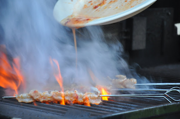 - Spicy Garlic Shrimp, Parmesan Polenta, Grilled Green Beans